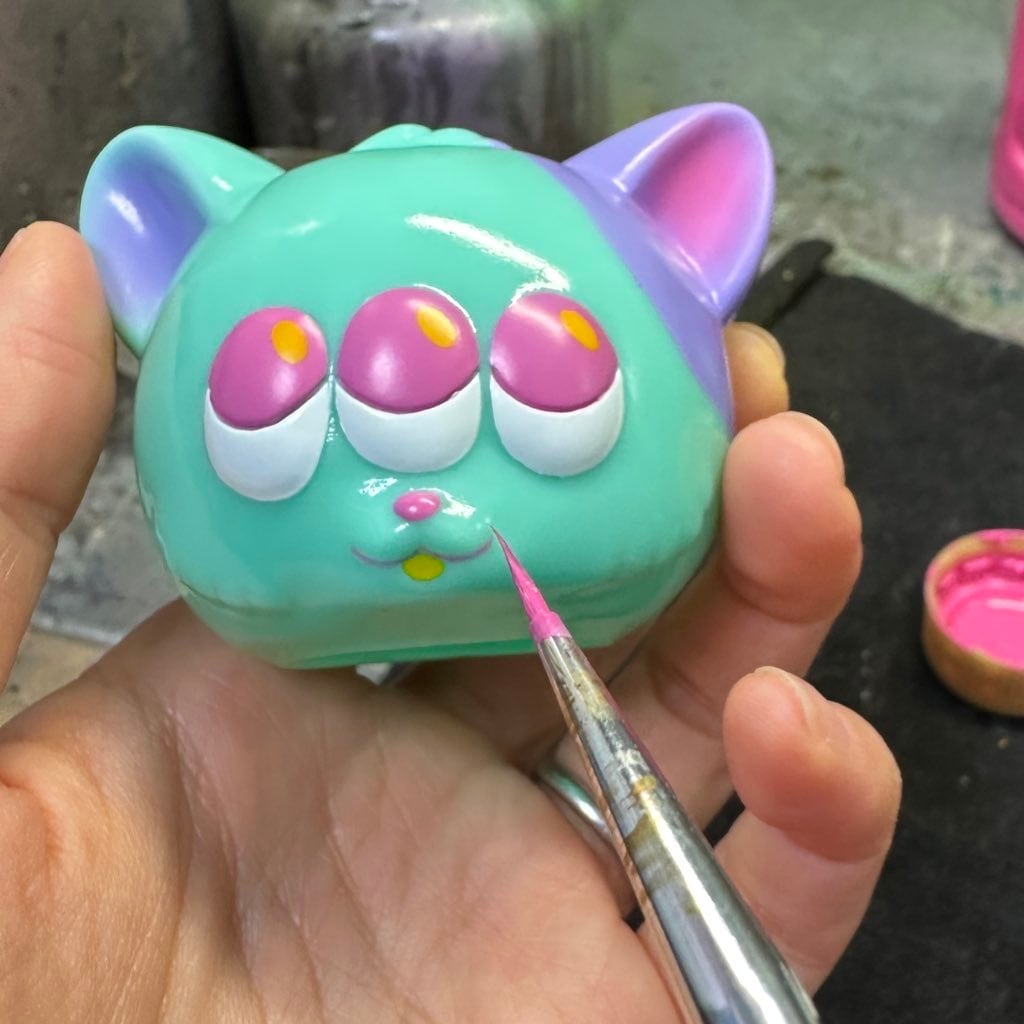 理想のゾンビ猫になるように配色や口元にこだわり、ツギハギを筆で描きました!