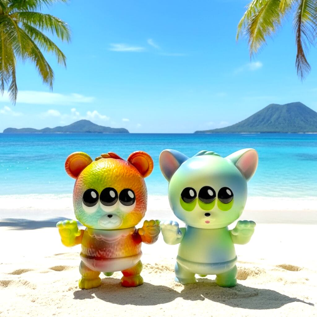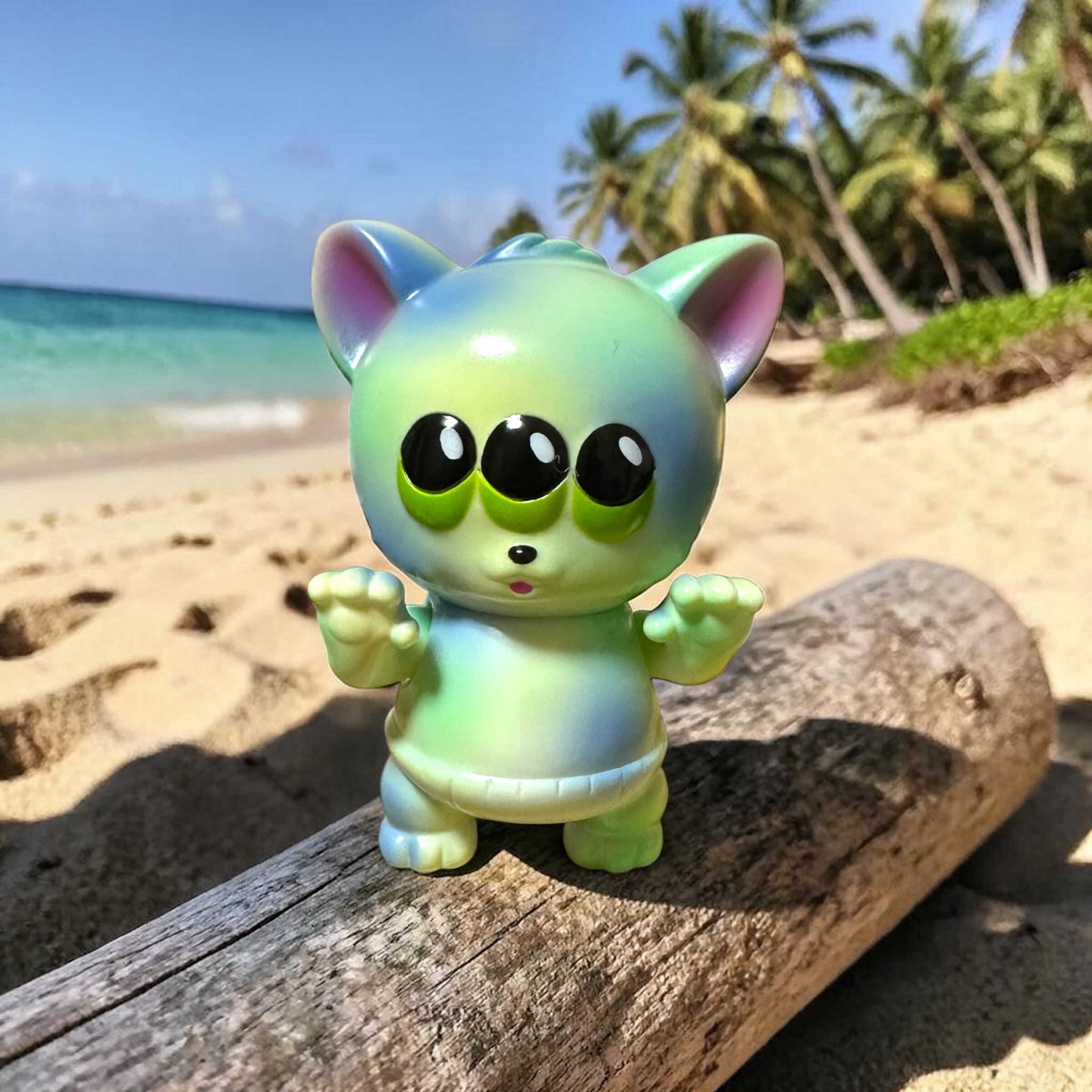 AJさんが塗装したちびカームキャット「南国カラー」ソフビです。